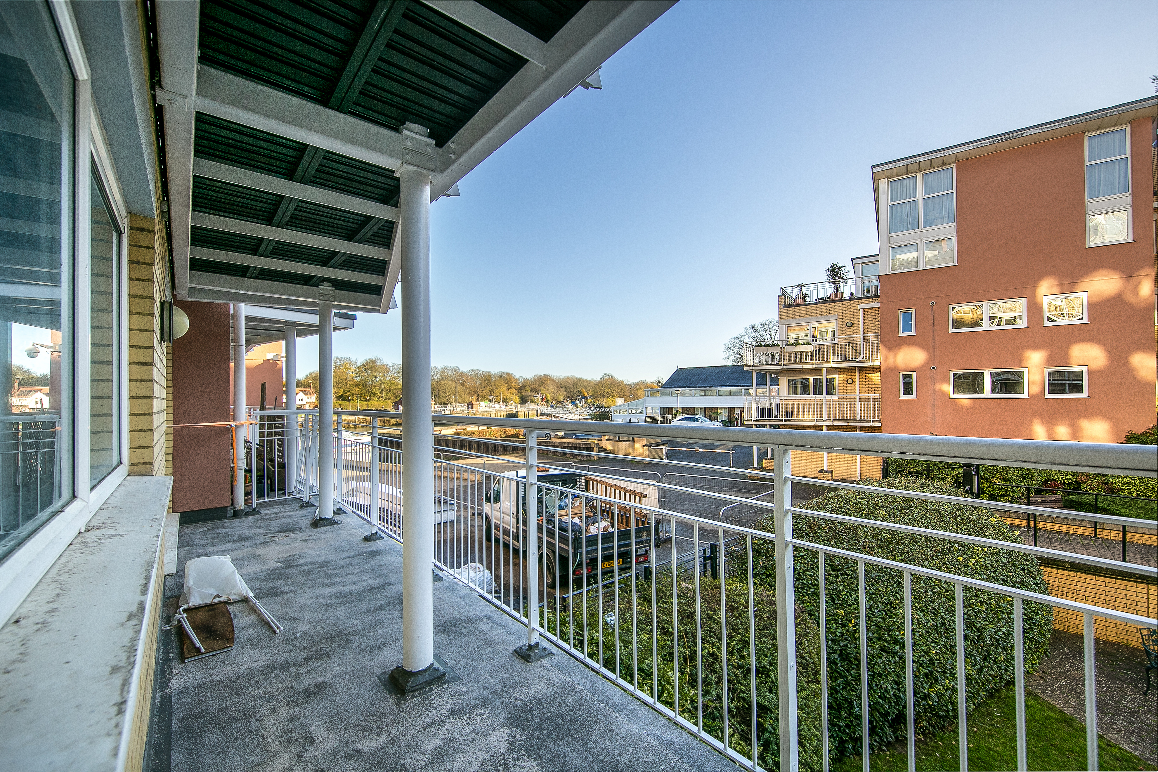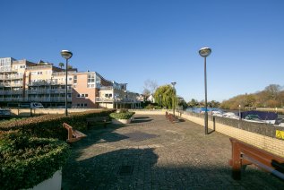 Newly decorated throughout, a raised ground floor two bedroom apartment with balcony in this riverside development with views towards the Thames.